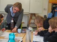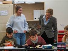 Überzeugen vom Ganztagsangebot beider Schulen konnte sich die Ministerin bei einem Rundgang durch verschiedene Projekte. Neben Einblicke in die Schulgartenarbeit, dem Backen von Weihnachtsplätzchen in der Schulküche oder dem Erstellen von Flyern in der Medien-AG stand auch ein Besuch am nachmittäglichen Unterricht einer Ganztagsklasse der Grundschule zum Thema „Wald“ auf dem Programm der Schulführung.